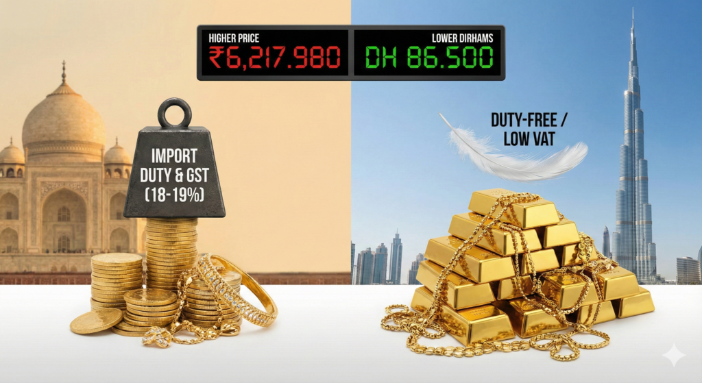 The question that naturally arises is: why is gold cheaper in Dubai than in India? The answer lies in several structural and economic factors that create this pricing advantage.